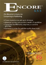 Version 5 - NOW AVAILABLE Encore is the standard in professional music notation. Its powerful transcribing and editing capabilities help musicians of all levels get their ideas into print. Fast, accurate, and easy to use, Encore allows you to create beautiful printouts of your scores - using up to 64 separate staves. Whether you're creating motion picture scores, orchestral arrangements, choir songbooks, or teaching music in school, Encore is second to none. Price AUD $ + GST for australian orders Full Version $360 Upgrade $120 Educational price $270 Download or + $10 Postage |