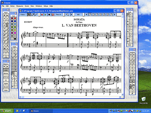 Complete Scoring Features, Part Extraction, and MIDI Playback Keep You in Control Whether you play directly into Encore or transcribe your MIDI files, you get accurate notation and beautiful printouts every time. You can extract parts, transpose for different instruments, and play your music as you originally conceived it. Encore graphically displays and plays back dynamic marks, repeats, multiple endings, pedal marks, or any MIDI controller. Flexible Page Layout and Guitar Tablature Expand Your Options Encore scores can be fine-tuned with a simple move of the mouse. On-screen palettes let you enter dozens of marks and symbols. Lyrics and text are easily added. Powerful features such as page layout control, TrueType® and PostScript® support, polyphonic part voicing, and editable expressions palettes provide an inexhaustible set of capabilities for presenting your music on paper. Instantly transcribe your music into guitar tablature with correct fingering and guitar fret diagrams. Computer Speed, Professional Results When you put aside your pencil and staff paper and compose and arrange your music with Encore, you achieve a new level of professionalism and productivity. Encore has become the musician's choice in notation software because it allows you to create and publish everything from simple lead sheets to symphonies in less time and with more control. Editing Features * Insert MIDI data for dynamics, controller data, and tempos. * Customizable Toolbar for quick access to frequently used commands. * Zoom in and out for precise control. * Expressions palette allows you to save your own expressions in any font, size, or style. * Guitar tablature symbols palette contains all the markings and symbols needed for notating tab. * Slur a group of notes automatically or draw slurs with the pencil tool. * Place objects anywhere on the page by clicking the mouse. * Select regions, pages, staves, systems, or the entire score for editing. * Transposition automatically affects chord symbols and fret diagrams. * Key commands to change note durations, sharps, flats, naturals, enharmonics, and MIDI velocity. * Transpose, change key signatures, meters, and clefs at any time. * Display and play back nested repeat structures, including variable bar lines and multiple endings. * Easily cut, copy, paste, clear, insert, delete, or undo notes or sections of music. * Symbols include: notes, rests, accidentals, slurs, ties, grace notes, cue notes, tuplets, accents, marks, ornaments, ottava, and dynamics marks. * Adjust the height and angle of beams and create Beam Groups. * Justify spacing for both accidental collisions and proper timing alignment. * Split notes from one staff onto two staves, either by pitch or voice. * Select from eight note-head types, including Gregorian and percussion. * Automatically extract parts with control over lyrics and markings. * Enter text or lyrics anywhere on the page in any font, size, or style, including dashes and melismata. Composition and Transcription Features * Notate scores as large as 64 staves per system with up to eight voices per staff. * Cross-staff beaming extends beams across staves for multi-staff instruments. * Guitar tablature automatically notates tablature for up to 8 strings in any tuning with definable fret position. * Percussion staff notates rhythms with multiple note heads and assignable staff position. * Note duration and multiple voices are automatically "guessed" and then beamed appropriately. * Auto spacing automatically spaces notes for easy reading. * Additional symbols for rhythm-part chord slashes, arpeggio sign and fingering numbers. * Insert or delete measures, pages, systems or staves anytime, anywhere in the composition. * Transcribes Master Tracks Pro or Standard MIDI Files. * Directly transcribes live input from MIDI instruments in real time. * Linear view allows an entire score to be viewed as one system. * Add guitar chord fret diagrams and chord names to your scores and lead sheets. * Easily add a pickup measure to your score. MIDI Performance Features * Plays back MIDI interpretations of dynamics, hairpins, repeats, endings, and articulations. * OMS and built-in Mac Synthesizer support (Mac only). * New Tempo Window, Color, Bank Select, and On-Screen Keyboard. * Sustain pedal markings affect MIDI. * Swing quantization gives music a swing feel. * Tempo indications can affect playback. * Assign up to 8 separate voices on each staff for playback over different MIDI channels. * Align the playback to match the current graphic appearance of your music. * Encore recognizes and generates MIDI Song Position Pointer and MIDI Clocks for syncing. * Select any number of MIDI ports using OMS (Mac only) or up to 32 MIDI channels with other MIDI Drivers. * Hear notes play over MIDI as you enter them with the mouse. * MIDI Panic Button sends an "all notes off" message at any time. Other Features * Mac and Windows version share same format, files are transfer-able between platforms. * Supports OMS for Macintosh. * Windows Soundcard compatible * Supports Industry Standard MIDI Files. Page Layout and Printing Features * Import Encore EPS files from many popular Publishing applications. * Choose between engraver's spacing and mathematically perfect alignment of notes. * Measures of rest can be compressed into one measure. * User can define global spacing defaults of staves, clefs, lyrics, chords, key, and meter. * Reminder time signatures can be displayed or hidden. * Use any font in your system for text, lyrics, chords, staff names, and measure numbers. * Place headers and footers on each page. * Print your scores using Passport's Anastasia Font on any TrueType® or Postscript® printer. * Print an entire score, individual pages, or extracted parts. * Print reduced or enlarged images or print large compositions in "tiles." |